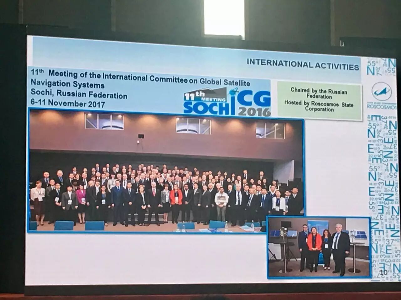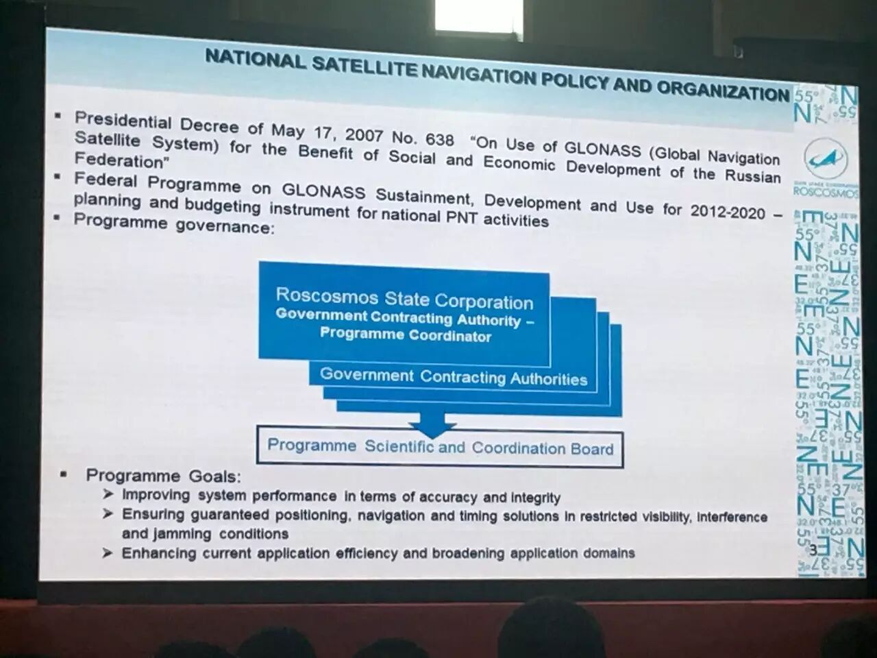 希望能夠提高GLONASS和其他衛(wèi)星導航系統(tǒng)的兼容性和互操作性。希望能夠?qū)崿F(xiàn)整個GLONASS可持續(xù)的競爭能力,我們也是在SOCH開展的這樣一個活動,是第十一屆全球衛(wèi)星導航系統(tǒng)國際委員會,預計將會有超過130多位來自23個國家和地區(qū)和不同組織的代表會參加本次大會。