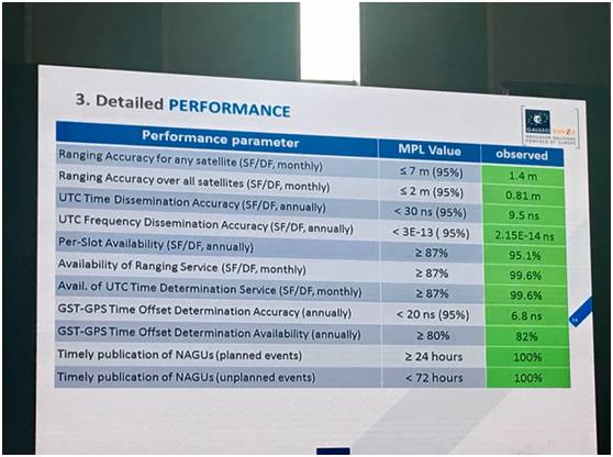 此外,通過性能方面的衡量,這中間包括幾個不同的亞組,當然還沒有包括去年11月阿里亞那5號火箭發(fā)射的幾顆衛(wèi)星,伽利略提供的是能夠覆蓋所有性能當中的95%,在測距方面平均精度是80厘米,UTC的精度在10納秒以下,如果遇到了一些緊急的狀況,它的相關信號在10分鐘之內(nèi)有98%高的概率會被發(fā)現(xiàn)。